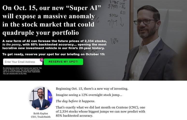 Keith Kaplan's Super AI Trading Event will provide an in-depth look at how TradeSmith's Super AI system analyzes market data to generate predictive insights for 2,334 stocks and 60 ETFs.