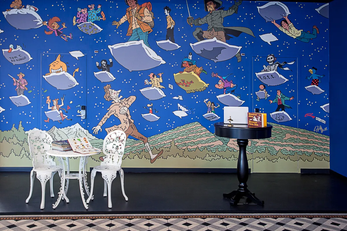 The whole effect is breathtaking. There is plenty of room for the unusual, and for dreams. It has to be said that the hotel is one of a kind.“Some countries have hotels dedicated to comics. But what sets ours apart is the direct involvement of the artists who created the frescoes in the rooms especially for us. Their creations are not copies of their previous works,” Magnani explains.