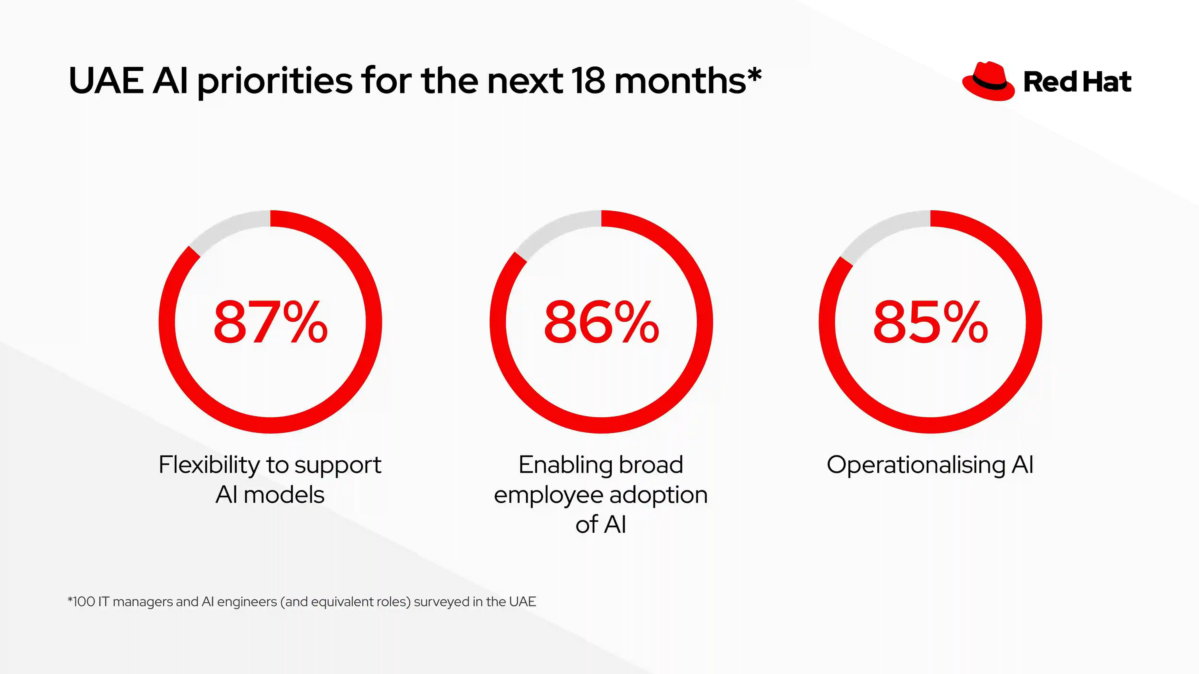 When asked about their organisation's IT strategy for the next 18 months, AI is one of the top-ranked priorities among 82%3 of respondents, along with security (833%), followed by cost optimisation (81%3), and sovereignty (76%3). However, 96%4 of organisations surveyed report they are not yet driving customer value from their AI investments. To overcome these challenges and help turn ambitions to reality, UAE organisations are embracing open source across all areas of IT strategy. The survey shows that100%11 of UAE IT leaders view open source as vital for cost optimisation11, post-quantum cryptography11, and virtualisation11. AI a work in progress: One of the highest AI priority of respondents for the next 18 months (83%3) is agentic AI, AI systems that operate with high degrees of autonomy and can execute complex, multi-step tasks with limited human intervention. Enabling broad employee adoption and operationalising AI are also ranked high on the priority to-do list, with 86%3 and 85%3 agreeing respectively. Retaining and developing the right talent remains a challenge, with AI skills still ranking among the most urgent gaps, as cited by 76%3 of respondents. Within AI specifically, the talent shortage mirrors the target priorities for UAE IT and AI leaders: connecting AI to enterprise data cited by 59%[1] of respondents, effective use of agentic AI cited by 57%, efficient use of AI capabilities cited by 58%, and educating the business to use AI reported by 47%. Almost all (98%12) of respondents experience barriers to AIadoption, especially integration challenges with existing systems (36%), data privacy and security concerns (32%), and lack of buy-in from stakeholders (32%). Additionally, 70%6 of respondents report they are experiencing a“shadow AI” problem – i.e., unauthorised use of AI tools by employees. Confidence tempered by complexity; open source key Confidence in the UAE's potential on the global AI stage is high, with 99%7 of responding UAE businesses believing the nation is, or will soon become, an AI powerhouse within the next three years8. A similar sense of optimism exists in other countries: 99%9 of respondents in Spain shared the same view, followed closely by Sweden, Germany, and the Netherlands at 98% each, while 83% of businesses in the UK expressed similar trust in their nation's AI trajectory. In terms of limiting factors to the UAE's rise in AI prominence, 62% of respondents cite a lack of computing infrastructure, followed by lack of talent pipeline (52%), and lack of public funding (45%), as the key hold-ups10. National data protection and sovereignty goals remain priorities on the IT agenda in the country, with AI adding complexity as another workload that must align to evolving cloud strategies. Barriersto cloud adoption remain as well, with respondents pointing to limited support from leadership (77%3 agree), unclear ROI (72% agree3), employee resistance to change (69% agree3), and lack of skills (69% agree3). Drilling down into cloud sovereignty strategy over the next 18 months, UAE respondents are prioritising operational control and autonomy (86%3), securing the software supply chain (81%3), and flexibility and choice of IT suppliers (86%3). Supporting Quotes: Adrian Pickering, regional general manager, MENA, Red Hat: “Our latest UAE survey reveals a clear truth: while AI investment is surging, realizing tangible customer value remains a challenge for many organizations. Moving beyond experimentation to deliver lasting customer value from AI means laying the foundation by integrating enterprise knowledge with existing systems.” “The survey's indication of the rise of 'shadow AI' highlights both a security risk and a powerful signal of employee innovation. This willingness to explore new tools offers a critical opportunity for leaders to identify and address skills gaps through targeted training. Ultimately, openness and common standards are not just ideals; they are essential for maximizing the value of AI and hybrid cloud investments, fostering collaboration, and driving the flexibility needed for true innovation.” Hans Roth, Senior Vice President & General Manager EMEA, Red Hat: “Organisations want greater operational control and IT resiliency to adapt in a world of constant disruption. The survey results, as well as our daily conversations, show sovereignty prominently on the agenda for enterprise's ongoing cloud strategies and the budding AI opportunity. Open source is central to this shift as it provides businesses with the transparency and flexibility to innovate rapidly without compromise. Red Hat helps enterprises retain choice about where their data lives, how their infrastructure runs and who they partner with. Sovereignty and resilience come from ecosystems, not silos, and Red Hat's mission is to enable any model, any accelerator, and any cloud – with trust at the heart of it all.” Additional Resources