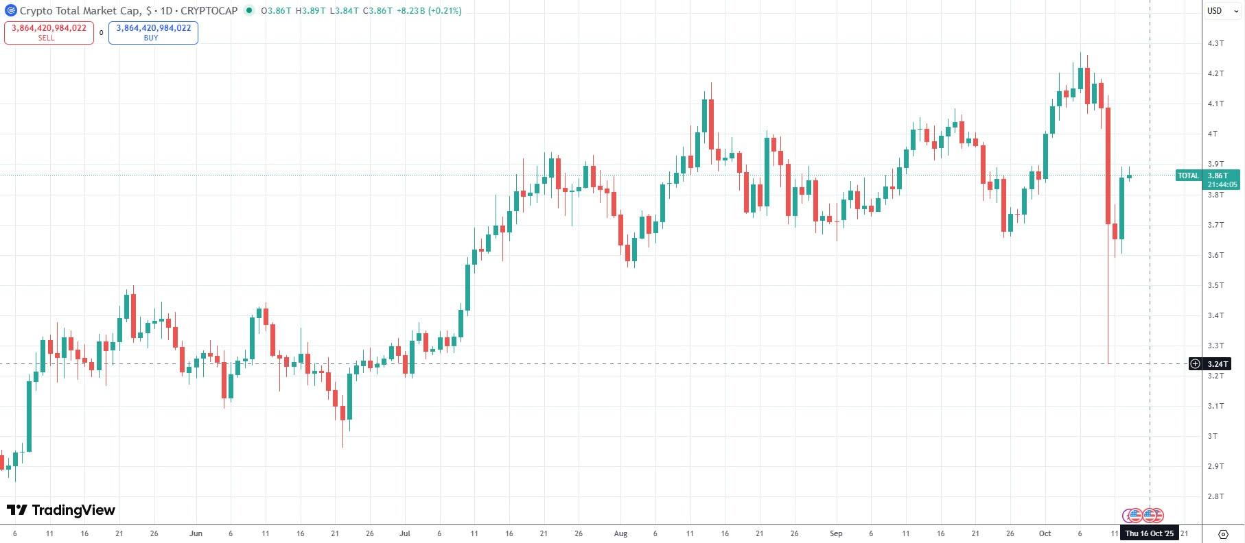 The event included Bitcoin's first-ever $20,000 red candle and a $380 billion market cap drop, before a V-shaped rebound as traders closed short positions. According to TradingView data, the liquidation was nine times larger than previous records, highlighting the intense leverage unwinding typical in crypto markets after periods of excessive speculation.