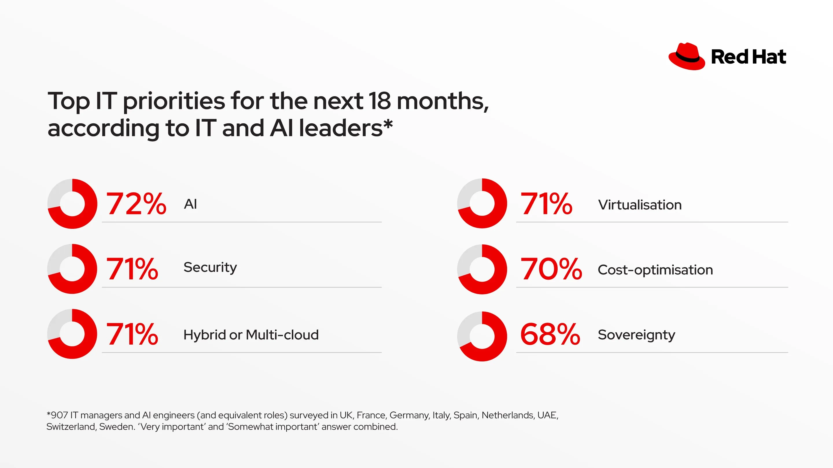 Organisations are primed for widespread adoption of artificial intelligence (AI), and see enterprise open source as an important success factor; however, their ability to scale is challenged by skills gaps, high costs and shadow AI. That's the headline finding of our latest survey of over 900 IT leaders and AI engineers in nine countries[1]. According to the survey, AI is a core strategic priority for 72%[2] of organisations in Europe, the Middle East, and Africa (EMEA), and they have plans to increase their AI investments by an average of 32% by 2026[3].The focus on AI is clear, yet the data also reveals a stark gap between ambition and reality: only 7% of organisations report“driving customer value” at scale from their AI investments today[4]. This is a crucial challenge for leaders who need to translate significant investment into tangible business outcomes. So, what is preventing organisations moving from small-scale pilots to enterprise-wide value? Tackling the barriers to scale AI: Our survey data outlines the extent of the talent shortage faced, with 70% of respondents agreeing there is an urgent AI skills gap3. The most significant gaps cited by those respondents are in the practical application of AI, such as connecting AI to enterprise data (49%), and making efficient use of AI capabilities (48%). Nearly as many (47%) report difficulty educating the business to use AI effectively, which complicates organisation-wide adoption. As the role of AI in the workplace is established, another layer of complexity emerges. 'Shadow AI', the use of unsanctioned AI tools by employees, is becoming a significant challenge to effective governance and scalable adoption with a stronger security posture. The vast majority of responding EMEA organisations (91%[5]) admit their organisation is experiencing a shadow AI problem. This should serve as a wake-up call: AI is being adopted with or without IT teams' authorisation. This introduces new risks and underscores the need for internal education and guardrails, supported by platforms that are accessible, governed, and designed with users in mind. The solution: a platform approach built on open source: Overcoming these barriers requires moving from a collection of fragmented tools to a unified platform strategy. IT leaders and AI developers in EMEA already recognise the path forward, as 92% agree that enterprise open source is important to their AI strategy[6]. An enterprise open source AI platform can offer the consistency and control needed to build, deploy, and manage AI across any hardware and any cloud. Organisations need a security-first, governed environment where teams can access the tools they need to experiment and build with confidence. Rather than spinning up lots of different systems in departmental silos (the top-rated barrier to AI adoption[7]), the use of an open source platform helps replicate success rather than reinvent the wheel. This approach allows IT to enable innovation, not block it, helping to fulfil a major AI priority for 75%2 of respondents: transparency and openness. Open source provides this transparency as well as increasing standardisation, helping enterprises retain control over AI and data decision-making. This control and flexibility is also vital to provide AI sovereignty, which is a priority for 74%2 of respondents. An enterprise open source platform like Red Hat OpenShift AI also helps address the skills gap. By providing data scientists and developers with common tools and streamlined MLOps and LLMOps workflows, it boosts productivity as well as allowing organisations to tap into the broad range of talent and innovation within the open source ecosystem. It also simplifies connecting models to enterprise data to help solve the integration challenges that are top of mind7. Meanwhile Red Hat AI Inference Server optimises inference for faster, more cost-effective model deployments, which helps surmount the cost barrier cited by 29%7 of respondents. By standardising on robust, open platforms, leaders can better control and govern AI, de-risk scale, and turn transparency into a competitive advantage. From ambition to value: To close the AI value gap, organisations must match their ambition with an IT platform strategy that prioritises innovation, choice and scale – much as hybrid cloud platforms have borne out to be the most sustainable model for the cloud world. The path from pilot to production relies on the flexibility to adapt and the ability to scale when ready. With a platform like Red Hat AI, EMEA enterprises have the foundation to do exactly that – scale, manage and secure AI on their own terms.