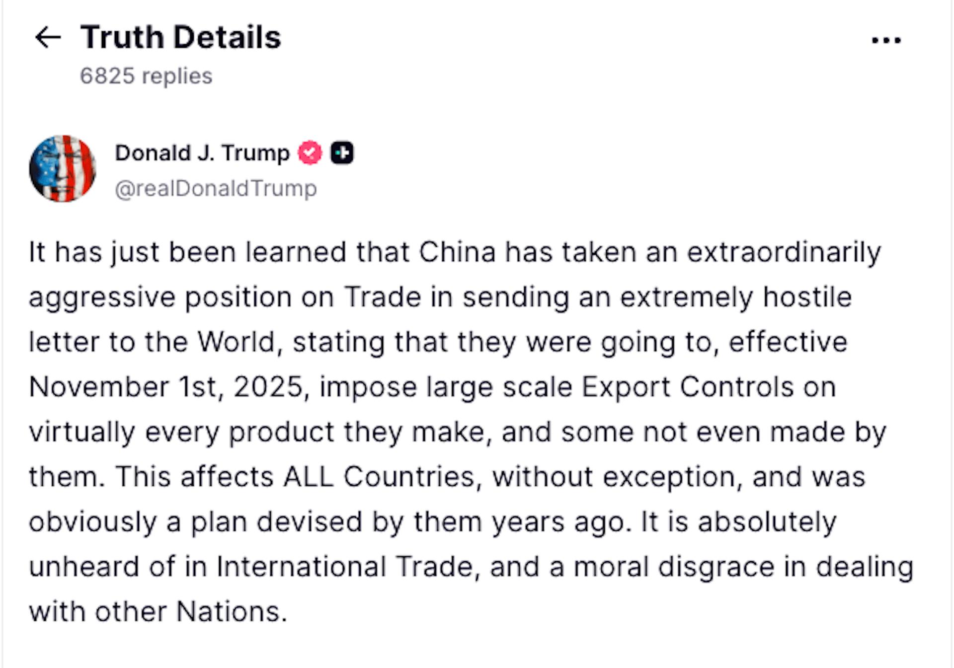 In response, Trump has threatened 100% tariffs on Chinese imports. But with the higher tariff rate not due to start until November 1, and the Chinese controls on December 1, there is still time for negotiation.