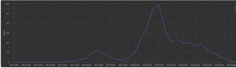 - Peak traffic: 6 Tbps Packet rate: 5.3 Bpps Main protocol: UDP, typical of volumetric floods Duration: 30-45 seconds Geographic concentration: 51% of sources originated in Brazil and 23.7% in the US, together accounting for nearly 75% of all traffic