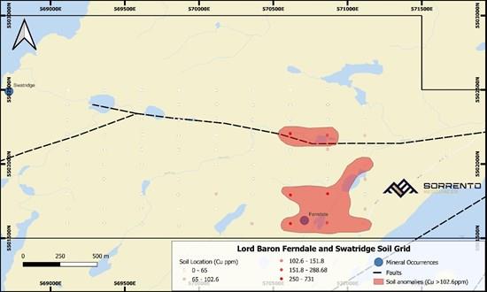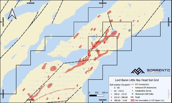 Sorrento Resources Identifies 2.25Km Anomalous Copper In Soil Trend, Lord Baron Project, Newfoundland