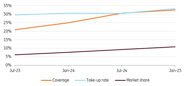 So far, the new mobile entrant, Digi, has not been able to take much market share in the mobile market, while its efforts to gain broadband market share have also been difficult. It reported 62k mobile customers at the end of 1H25 and did not disclose broadband customer numbers. Despite intensifying competition, Proximus, Telenet and Orange Belgium are doing relatively well. Nevertheless, as Digi wants to build its own mobile and fibre infrastructure, the marketplace may become more competitive. Developments at Proximus's global division have also been disappointing.
