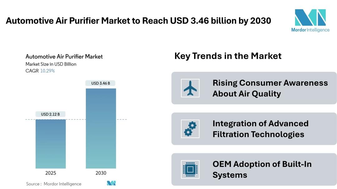 Automotive Air Purifier Market To Reach USD 3.46 Billion By 2030, Driven By Rising Air Quality Concerns And Cabin Health Awareness Mordor Intelligence