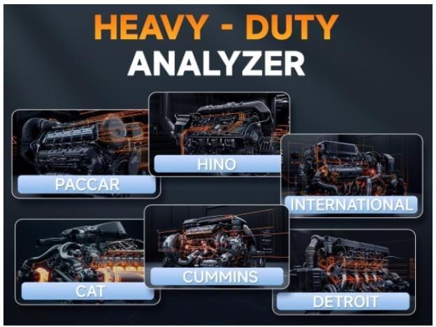 The HD500 supports a wide range of heavy-duty brands, including Cummins, CAT, PACCAR, Detroit, International, Hino, Ford, and Chrysler. It also supports J1939, J1708, J1587, ISO27145, Fault-Tolerant CAN, CAN FD, DOIP, and other essential protocols, ensuring broad compatibility for diesel pickups worldwide.