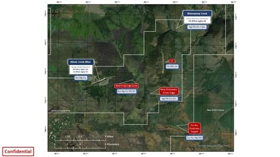 Additional field studies, following up on prior soil geochemical anomalies, led the geologic team to the discovery of "Silver Sage", an exciting, entirely new area of mineralization. This new discovery is one more indication of the continuity and potential of this large CRD property. The Silver Sage discovery lies between Warm Springs and Water Pump Creek, just off the south end of our 4400 ft airstrip. Trenching activities in this area uncovered near surface argentiferous galena, cerussite (Lead carbonate) and sphalerite mineralization. Subsequent field work included excavating pits and additional soil sampling, and we were able to finish our season with nine drill holes totaling 906.5m in this new area. Initial assay results from these activities are anticipated to be released in Q4.