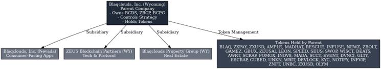 Blaqclouds, Inc. Announces Corporate Ecosystem Structure Highlighting Strategic Roles Of Blaqclouds Wyoming, Blaqclouds Nevada, ZEUS Blockchain Partners, And Blaqclouds Property Group