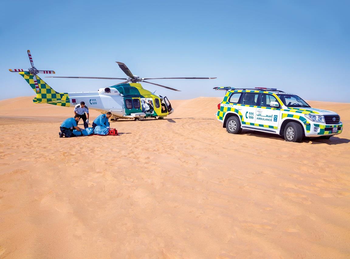 Ambulance coverage in Sealine area is available 24/7. Two regular ambulances are permanently stationed in the area, along with two four-wheel-drive ambulances to transport patients from sand dunes to the Sealine clinic during its operating hours, the standard ambulance site, or the air ambulance landing area, as needed.