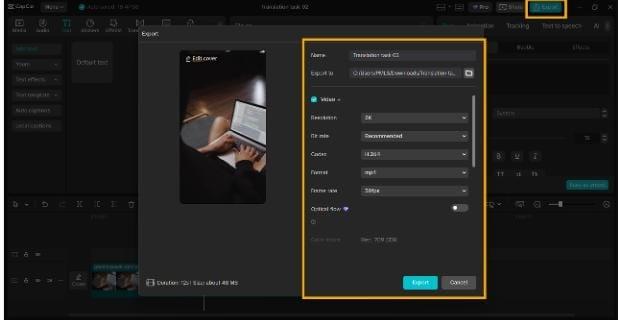 Hit Play to view your synced video. Edit clips if any timing is incorrect. When ready, navigate to Export on the top-right. Select resolution, format, and frame rate, then click Export Video.
