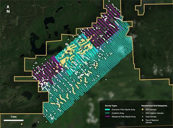 Where suitable, historically completed work was utilized, including a 2016 Wesdome geophysical survey, and surface grab samples collected by Gold X2 in 2022-2023.