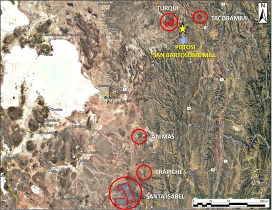 The Ánimas project is in southwestern Bolivia, department of Potosí, Sud Chichas province, within the Ánimas-Chocaya-Siete Suyos mining district.
