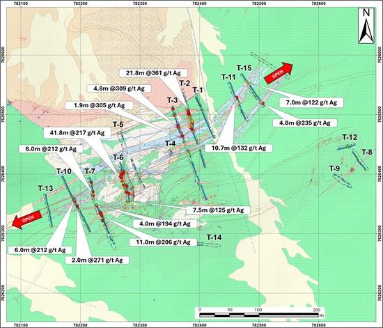 Geochemical results on surface show an average grade of 194 g/t Ag, and the underground geochemical results are averaging 246 g/t Ag.