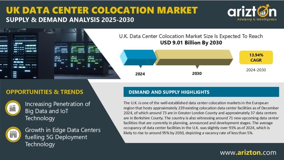 UK Data Center Colocation Market To Surpass USD 9.01 Billion By 2030, Hosting 239 Facilities Across Greater London And Berkshire Arizton