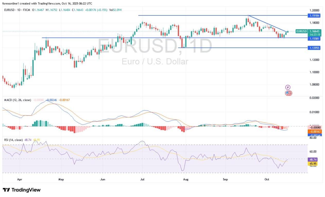 Based on recent trading, the EUR/USD pair has formed a double bottom pattern on the short-term chart, suggesting the possibility of a reversal from the previous bearish trend. Across trading company platforms, the Euro/Dollar pair appears to be testing the neckline resistance at the key psychological level of 1.1600, and a breakout of this area could confirm a shift in direction. If the neckline is successfully broken, the EUR/USD pair could rise by the same height as the double bottom formation. However, the price may encounter resistance from the nearby descending trend line and the dynamic pivot point of the 100 Simple Moving Average (SMA), which could trigger a pullback before the upward trend gains momentum.