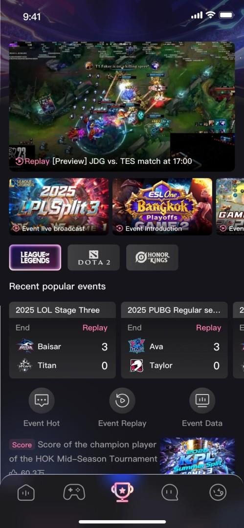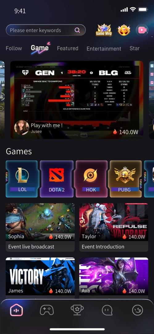 5. E-Games: Enjoy live esports broadcasts of popular games like Valorant, CS, MLBB, LoL, and PUBG, while interacting with players, streamers, and teams.
