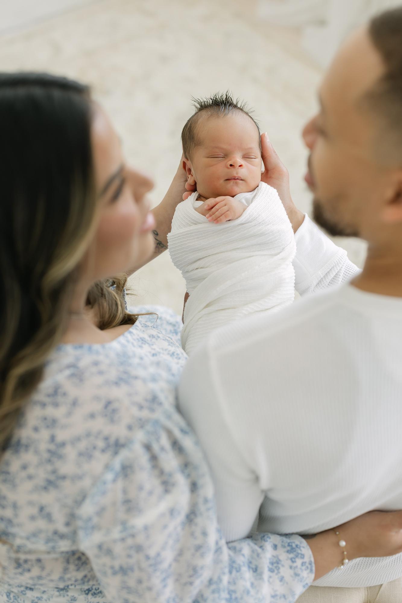 Her studio provides a curated wardrobe for moms, styling guidance for dads and siblings, and the option of professional hair and makeup so parents can feel cared for and relaxed on session day.