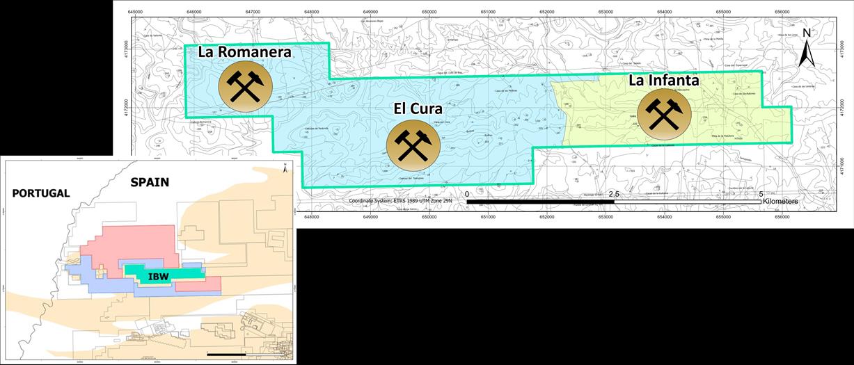 Figure 1. IBW tenement and locations of La Romanera, El Cura and La Infanta deposits.