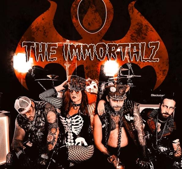 The Immortalz is a horror-punk outfit from Austin, Texas, known for high-energy sets and theatrical worldbuilding. The project draws on a tongue-in-cheek mythos that places the band in“ancient burial chambers beneath the Capitol tunnels,” bound to an unholy crusade by a legendary gigawizard called Gwildor. Members appear in character and perform under stage names that match the lore: Scarah, Damsel of the Doomed (vocals), Gorey Corey (guitar), Count Bockula (bass), and Phil Collin Robinson (drums). The group's shows deliver“blood, booze, and beats” in a fast, crowd-driven format designed for Halloween audiences.