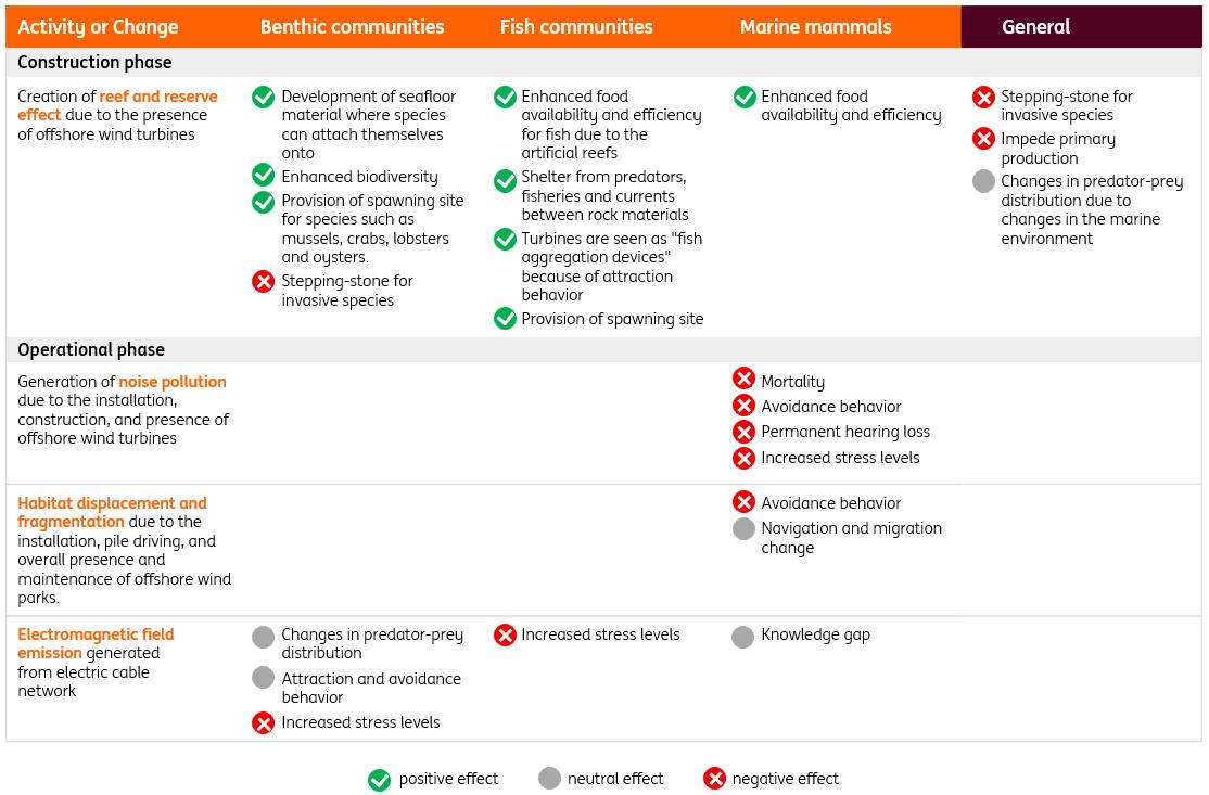 Offshore wind farms can also create new habitats. Reefs formed around turbine monopiles can support fish and benthic communities, right on the ocean floor, especially when fishing is restricted in their vicinity, creating a 'nature reserve effect.'