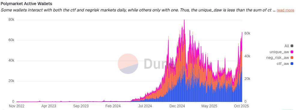 Polymarket daily active wallets. Source: Dune