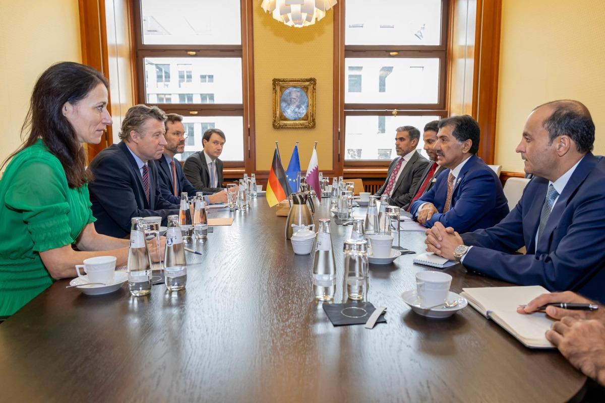 The meeting was attended by Ambassador of the State of Qatar to Germany HE Abdullah bin Ibrahim Al Hamar and the accompanying delegation.