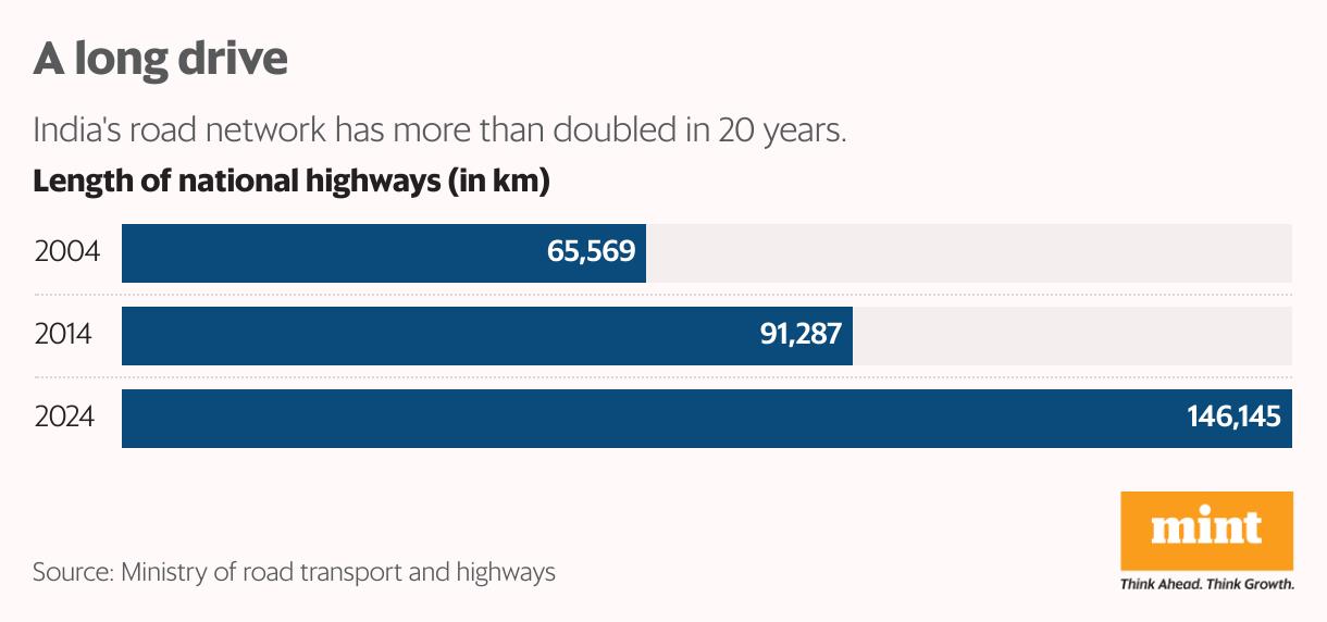 “The plan to construct 20,000–25,000 km of expressways over the next five years-creating a Golden Quadrilateral and East-West/North-South grid of high-speed corridors-can be transformative if executed well," said Jagannarayan Padmanabhan, senior director and global head, consulting, Crisil Intelligence.