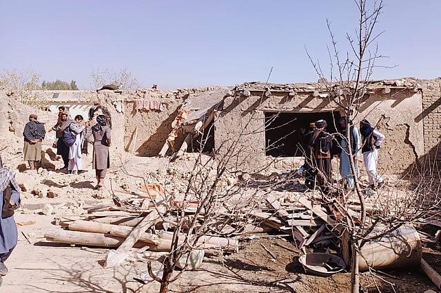Locals inspect the site of a cross-border attack by the Pakistani army in Afghanistan's eastern Paktika province, Saturday, Oct. 18, 2025. (Photo | AP)