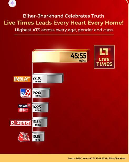 Live Times Emerges As The No.1 Channel In Bihar-Jharkhand With ATS Of 45:55 Mins