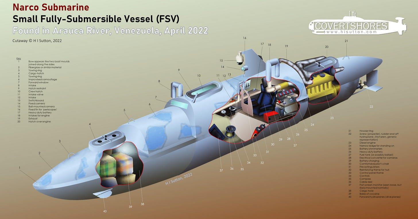 Narco runners operate roughly three types of sea platforms, all of which are manufactured clandestinely in workshops in remote jungle areas of South America. The majority are built in Colombia, but facilities have also been discovered in neighboring countries. These are narco go-fast boats, semi-submersibles and home-built submarines.
