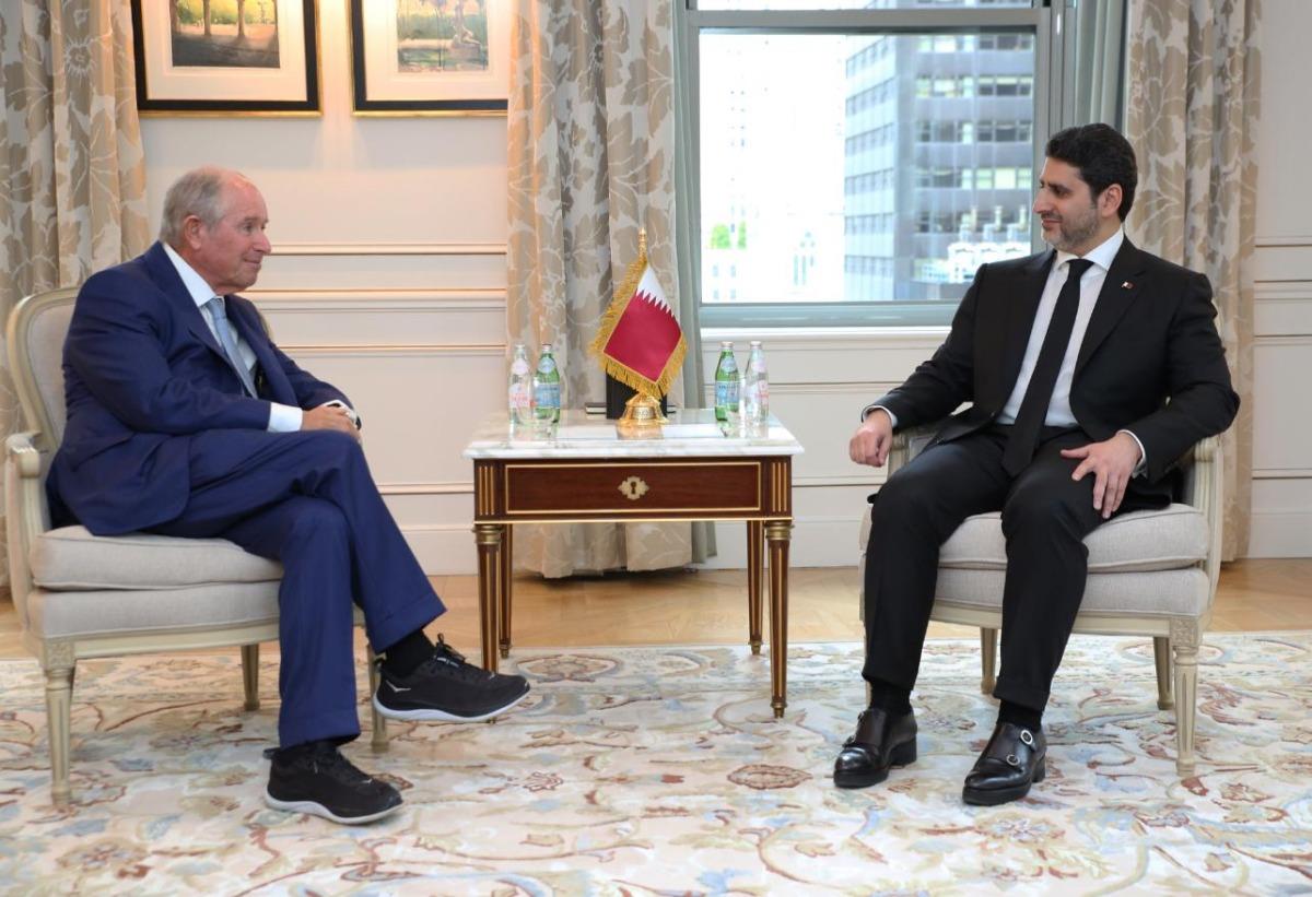 New York: Governor of Qatar Central Bank and Chairman of Qatar Investment Authority, HE Sheikh Bandar bin Mohammed bin Saoud Al-Thani, met with Chairman, Chief Executive Officer and Co-Founder of Blackstone, Stephen Schwarzman, along with the accompanying delegation, during his visit to New York, United States of America.