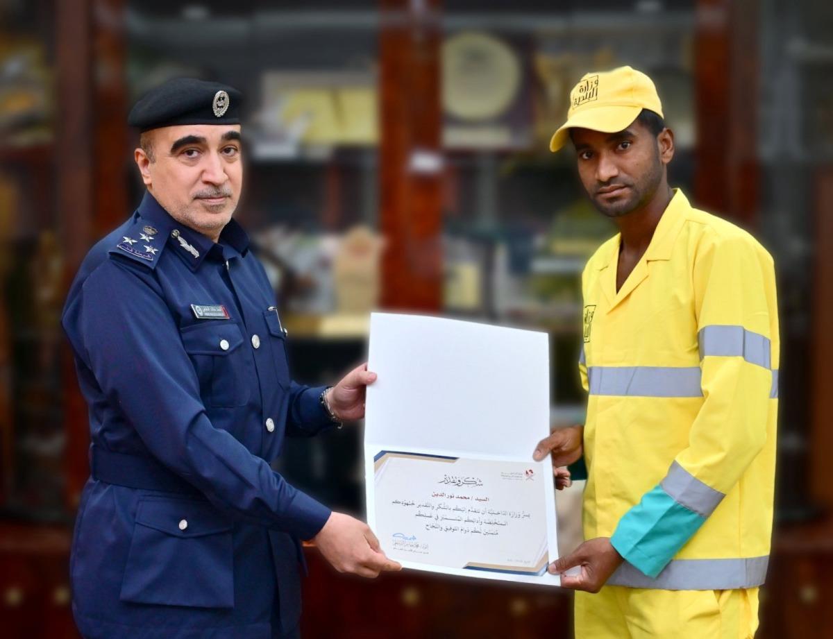 Brigadier General Ahmed Khaled Al Khalifi, Director of the North Security Directorate, presented thanks and recognition to the resident, praising his positive initiative that reflected positive behavior and contributed to supporting efforts to maintain security.