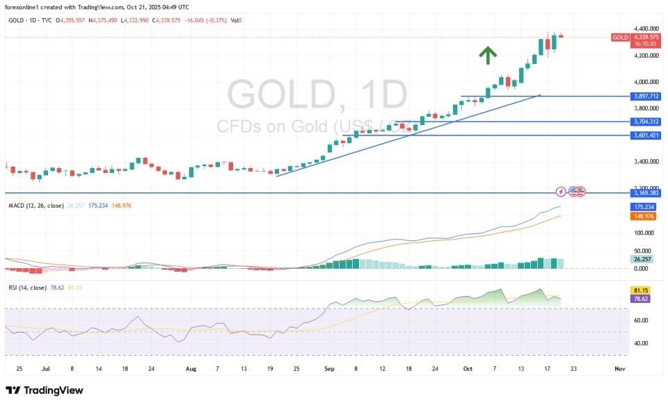 - The overall of Gold Trend: Strongly bullish. Today's Gold Support Points: $4290 – $4200 – $4170 per ounce. Today's Gold Resistance Points: $4385 – $4440 – $4500 per ounce.
