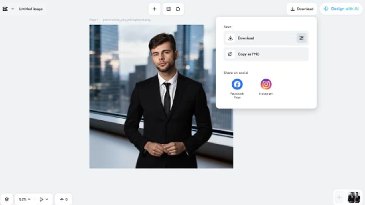 I tried entering this prompt: "Blurred modern city background with soft daylight and cool tones, giving a clean, professional look" and click "Add to chat". Within seconds, the AI transformed my plain photo into something straight out of a high-end photoshoot - smooth blur, balanced lighting, and just the right amount of polish.