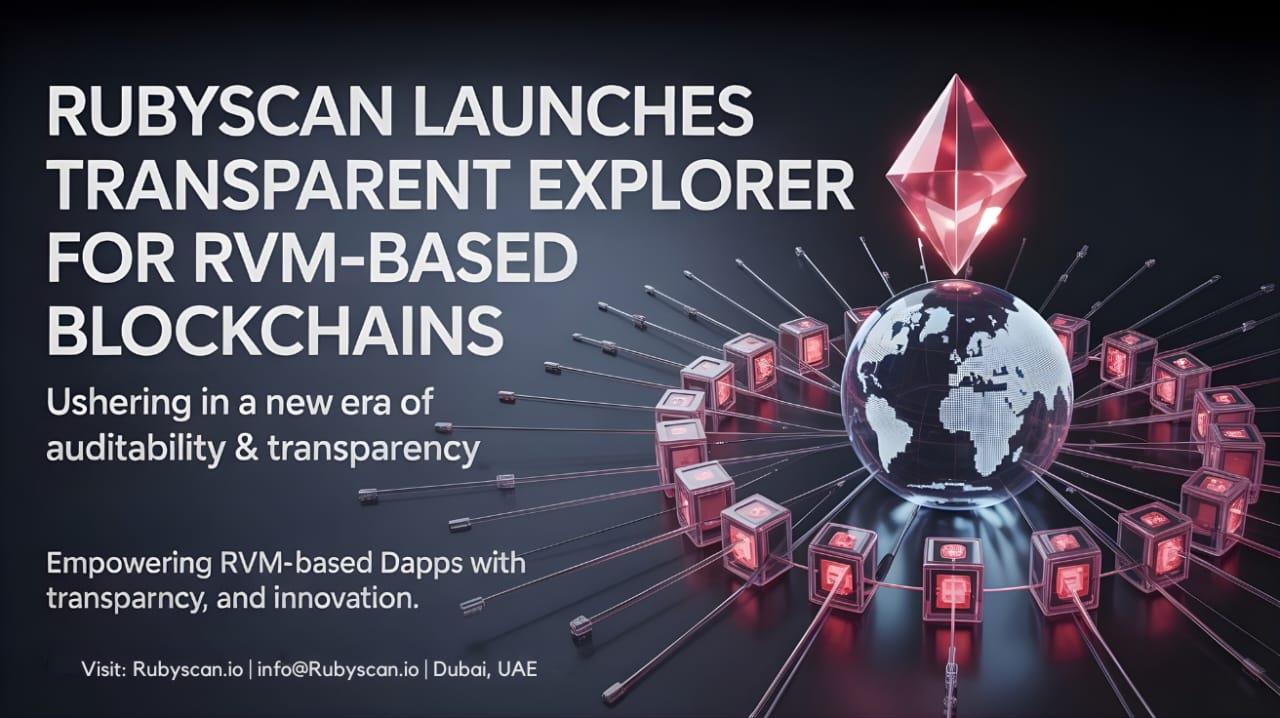 DUBAI, United Arab Emirates, Oct. 22, 2025 (GLOBE NEWSWIRE) -- In the recent announcement, Rubyscan unveils a transparent explorer for RVM-based blockchain that ushers in a new era of auditability. The project is poised to revolutionize decentralized applications (dApps) with its innovative approach. With its holistic approach, Rubyscan aims to redefine transaction dynamics in the blockchain space by leveraging the Proof of Authority (PoA) consensus mechanism.