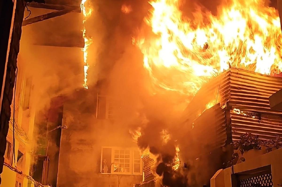 “Despite hours of intense firefighting, the fire reduced nine houses and a godown to ashes, while several adjoining structures suffered partial damage.