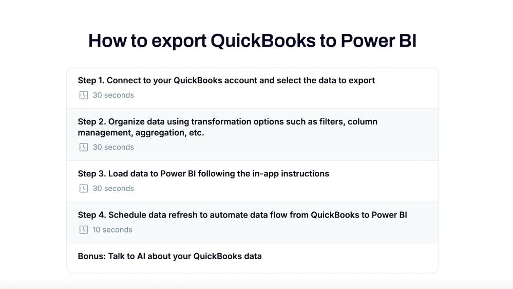 Coupler's QuickBooks to Power BI connector restores and even enhances this functionality, allowing users to automatically import QuickBooks data into Power BI with built-in scheduling and data transformation options.