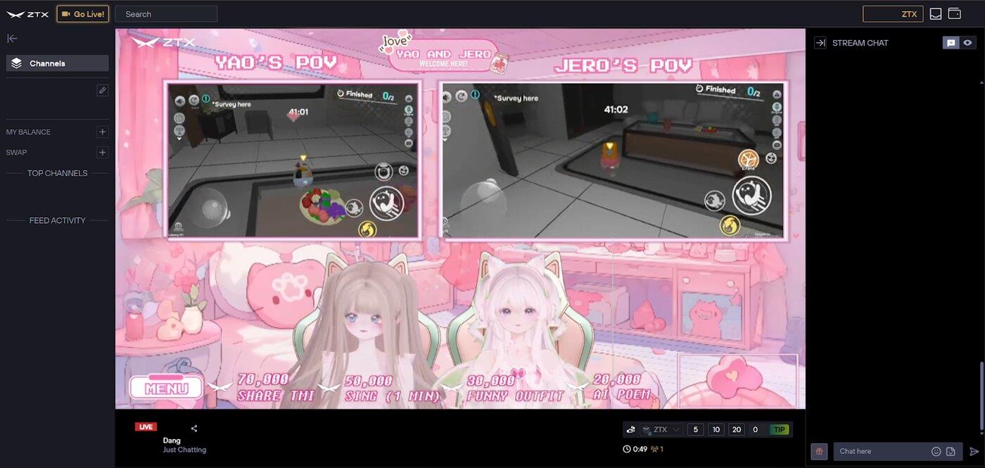 Singapore, Singapore, Oct. 24, 2025 (GLOBE NEWSWIRE) -- ZTX , the Web3 social creator ecosystem, announced that it had opened its native virtual livestreaming platform to its community. The new platform launch comes after months of pilot livestreams - conducted by global creators from ZEPETO - and enriches the creator economy of the ZTX ecosystem. By enabling avatars and items from ZTX and ZEPETO to be used in livestreams using $ZTX tokens, the utility of ZTX expands to both Web2 and Web3 communities while deepening the appeal of the ZTX mobile application.