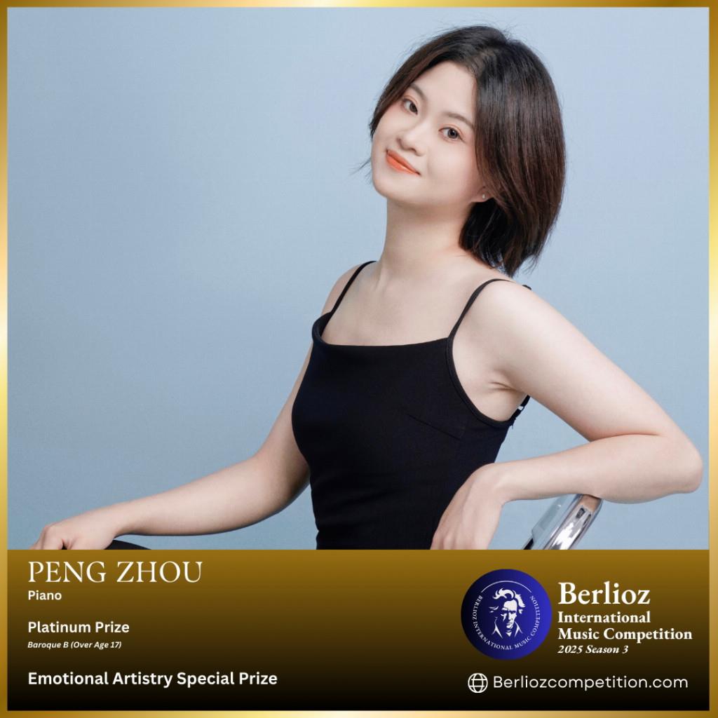 Several international music competitions have recently recognized Zhou's exceptional talent. In 2025, she was awarded the Emotional Artistry Special Prize and the Platinum Prize in the Baroque B Category at the Berlioz International Music Competition. Additionally, she earned the Grand Prize in the same category at the Saint-Saëns International Music Competition. Most recently, Zhou received the Best Musician of the Season Prize at the Clementi International Music Competition. She has also been honored with the Evelyn Semenza Honts English Scholarship, the Barringere Music Scholarship, and the Margaret Ryan Sampson Scholarship from the University of Nevada, Reno.