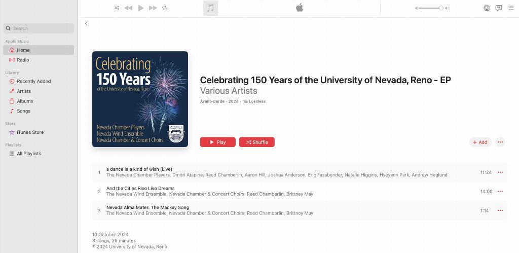Zhou contributed to the university's landmark album, Celebrating 150 Years, which was released on Apple Music and other major streaming services in October 2024. She performed the piano for the world premiere of "And the Cities Rise Like Dreams," a piece commissioned by American composer Steve Danyew, featuring both the Nevada Wind Ensemble and the university choir. Local news outlets described the album as a "milestone project," emphasizing its representation of collaborative art and innovative ideas at the University of Nevada, Reno. Zhou's recent performances with the Nevada Wind Ensemble include Ginastera's Danza Final, Debussy's Hommage à Rameau, and James M. David's Urban Light. In addition to her work with large ensembles, she also plays chamber music. Currently, she is performing Schubert's Violin Sonata No. 2 in A minor, Mozart's Piano Trio No. 5 in C Major, and Mendelssohn's Piano Trio No. 2 in C minor. In 2022, Zhou began a partnership with Chinese harpist Yirui Li, with plans to record their first album and collaborate with American Harp Society chapters in Chicago and Houston.