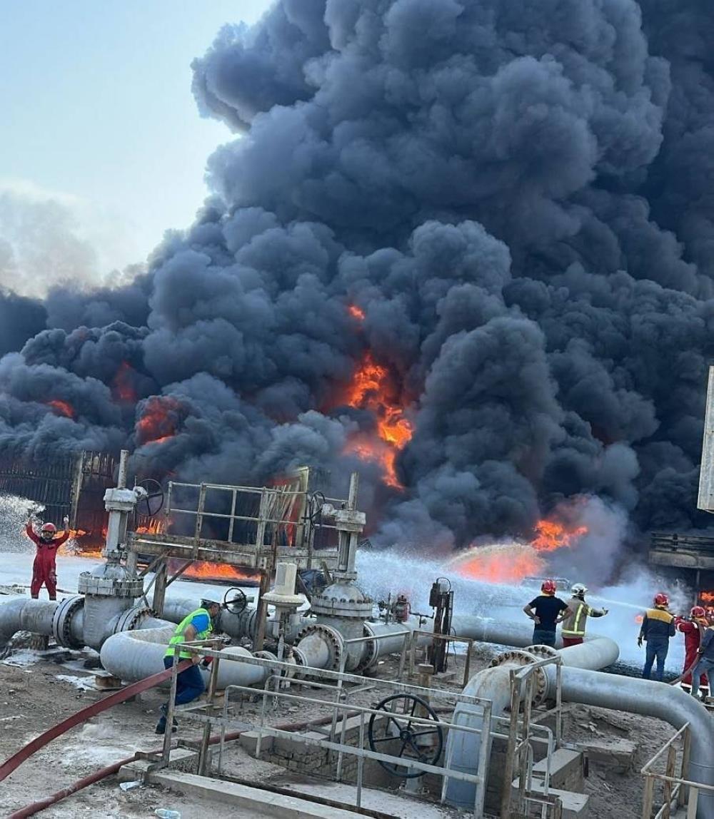 He explained that Basra Civil Defense teams are working to extinguish the fire with support from oil firefighting teams. He noted that the head of the Zubair 2 Warehouses Division was killed, and six oil workers were injured in the incident.