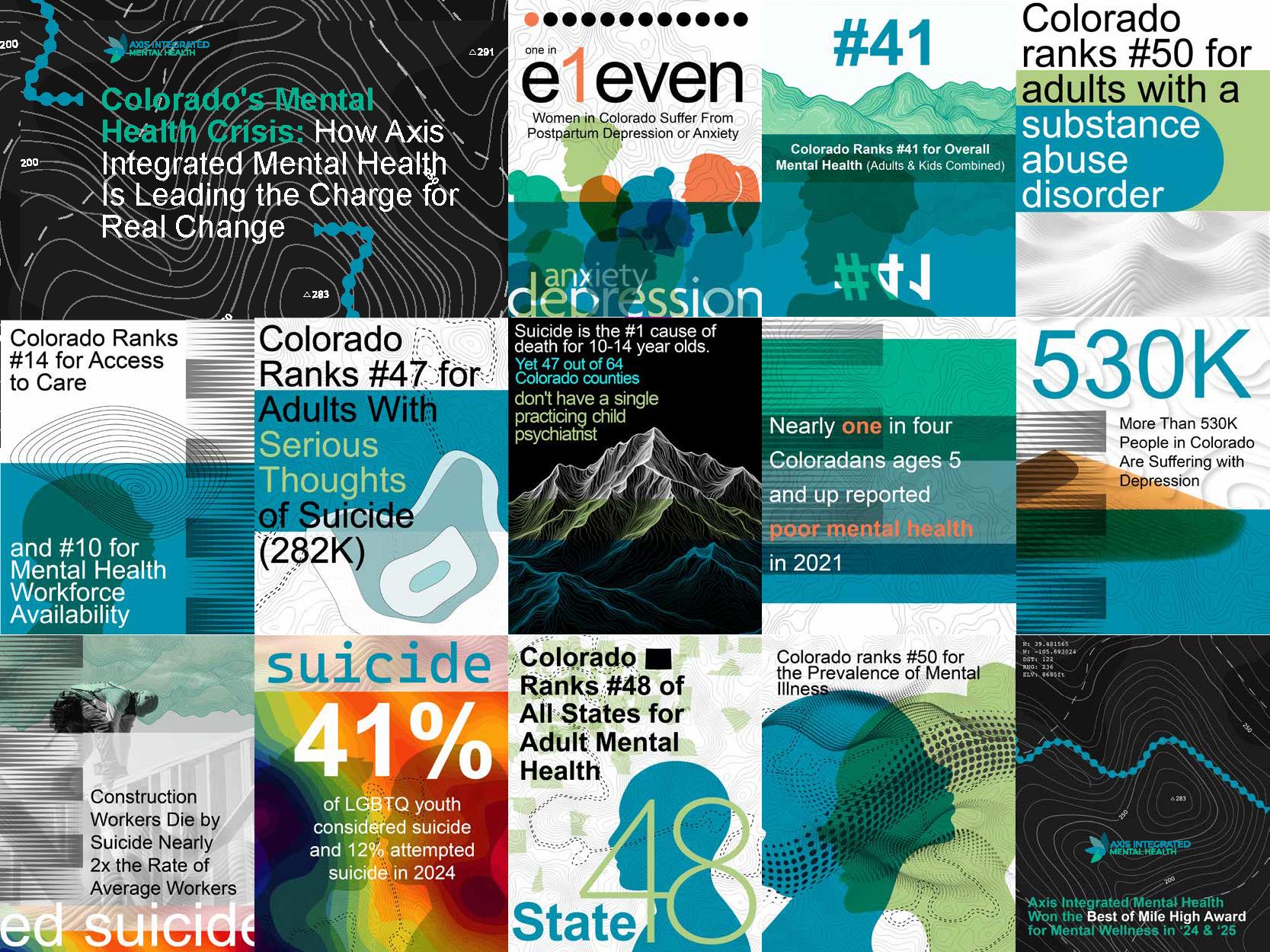 For the last 3 years, Axis Integrated Mental Health has published its research on Colorado's mental health crisis to raise awareness. In 2025, Colorado ranked #48 for adult mental health, sinking even lower than last year's #40 ranking of all states. In response to Colorado's mental health crisis, Axis initiated the 266K Project, a suicide prevention initiative to aid the 266K adults in Colorado with serious thoughts of suicide. Unfortunately, the number of adults with serious thoughts of suicide in Colorado has now increased to 282K adults.