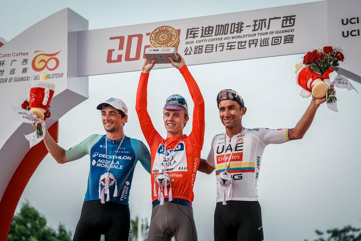 In the end, French sprinter Paul Magnier (Team Soudal – Quick Step) dominated stages in Fangchenggang and Chongzuo – Jingxi, securing a record-breaking“5 wins in a single edition.” He claimed the blue jersey and established himself as the brightest star in the Tour of Guangxi's history. The overall red jersey went to Paul Double (Team Jayco AlUla), whose exceptional climbing skills sealed victory in the Yizhou – Nongla stage - known as the“Queen Stage.”