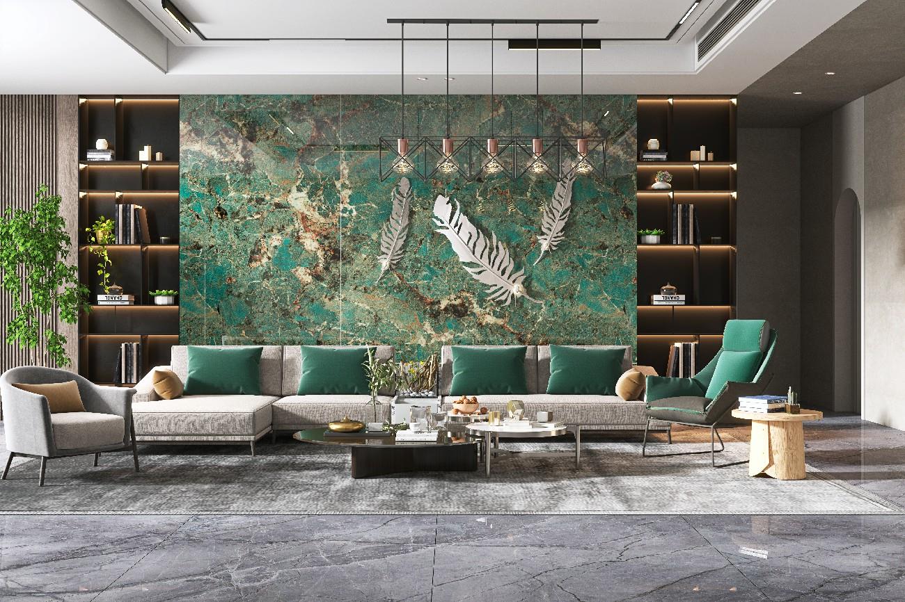 With a diverse palette of colors and textures inspired by natural marble, precious stones, and Artistic Surface s, sintered stone empowers architects and homeowners to express luxury with creativity. Whether it's a dramatic dark stone pattern or a vivid green jade tone, the result is a bold statement that blends technology with timeless beauty.