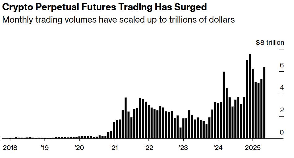 Initially popularized by crypto platforms such as BitMEX and later by FTX, these products fueled explosive growth in crypto trading. In 2025, monthly volumes surged to approximately $6.4 trillion-up from $35 billion in 2018-highlighting their significance in crypto markets. While FTX Global offered highly leveraged crypto perps, FTX US, under Harrison's leadership, operated as a regulated, separate entity that did not provide such high-leverage options.