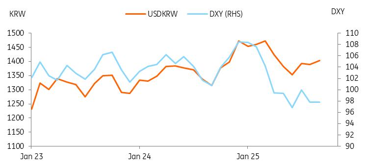 Also, even if the funding can be digested with interest income and FX reserves, as the BoK argued, we expect to see an increase in dollar-denominated bond issuances. Also, structurally strong demand for the dollar should limit the downside of the USDKRW in the longer term despite the narrowing rate gap between the US and Korea. We expect the USDKRW to reach 1,350 by the end of 2026.