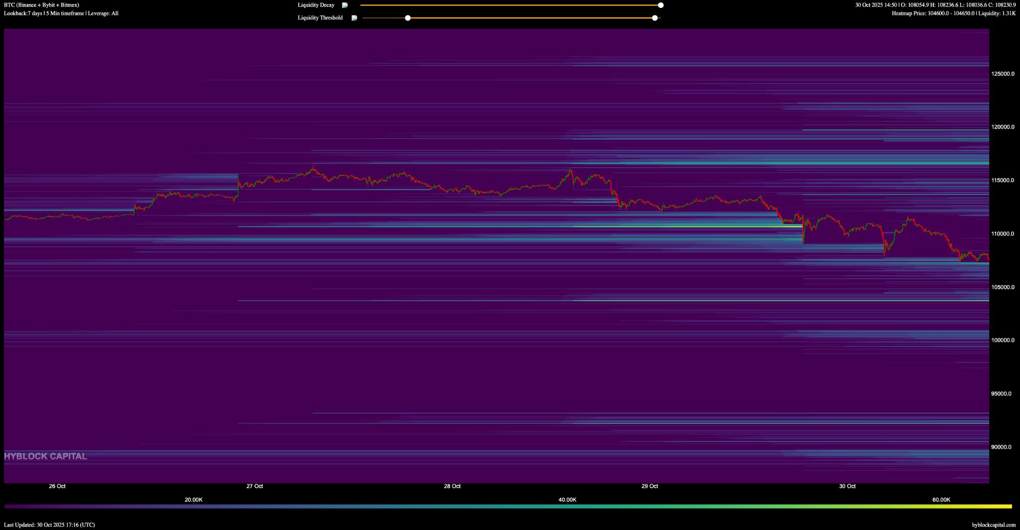 BTC/USDT 7-day liquidation heatmap. Source: Hyblock