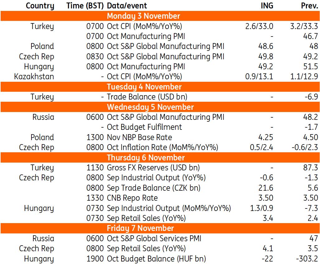 Industry/Retail (Thu): Following the weak flash estimate of Q3 GDP in Hungary, we expect another set of data confirming that consumption is the only driver of the Hungarian economy. Retail sales are showing small monthly growth and, with the help of the low base, the yearly figure will be impressive. Due to the impact of working days, the raw figures of industrial production will appear strong, but the 1.3% month-on-month increase is far from the revival we used to see after the summer shutdowns in manufacturing. Therefore, we would rather label this as another abysmal performance.