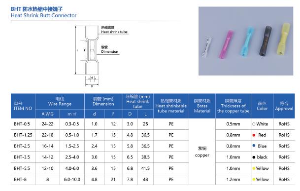 Comprehensive Size Range:Models from BHT -0.5 to BHT-8 cover 24-8 AWG (0.3-10.0 mm2)